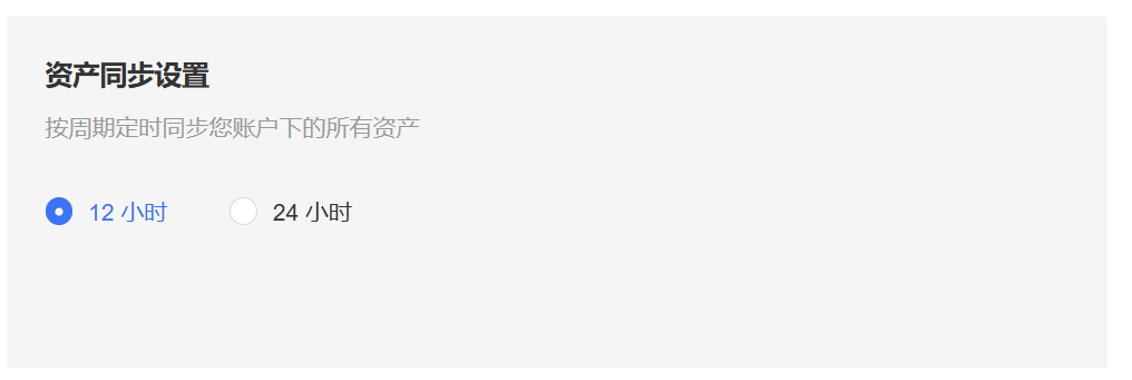 - 选择自动同步资产周期。 - 12小时:每天01:00、13:00自动同步服务器资产信息。