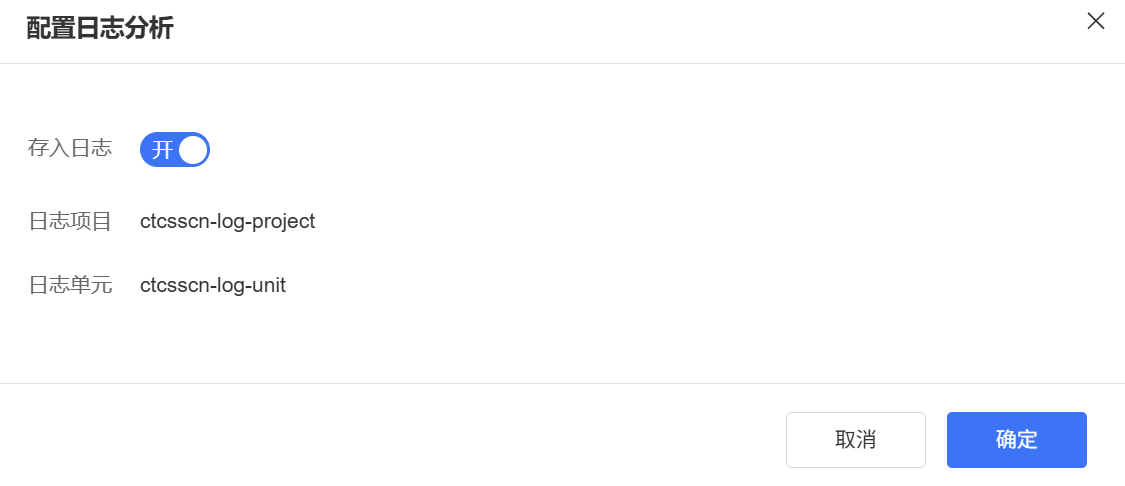 - 单击“配置”按钮,在弹出的对话框中可开启日志存入云日志服务。