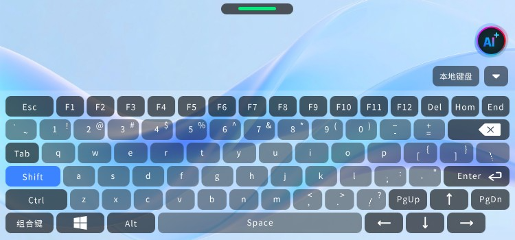 AI云电脑支持虚拟键盘与本地系统键盘切换调用,点击默认键盘中的“切换”按钮进行切换。