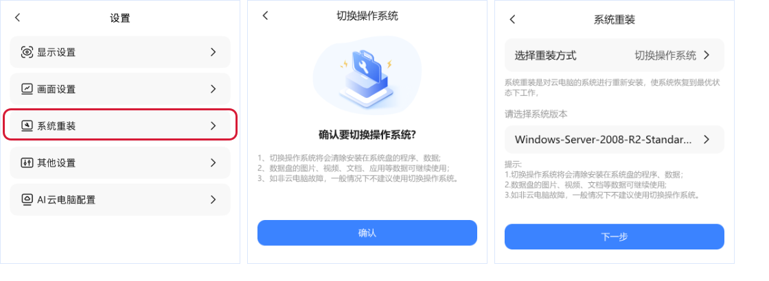 如非AI云电脑故障,一般情况下不建议使用切换操作系统。