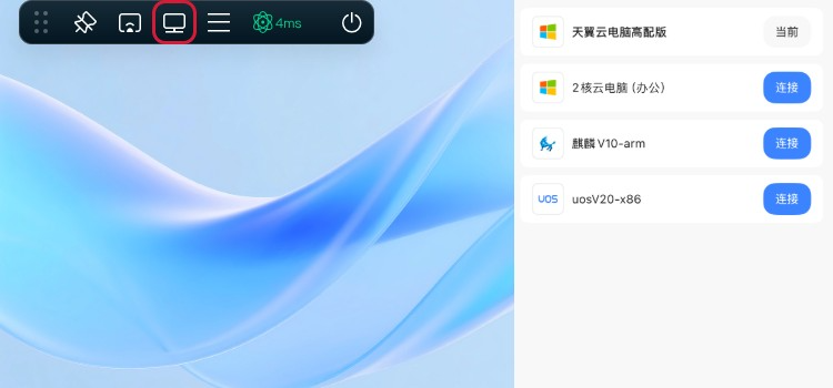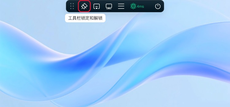 进入AI云电脑后,可在桌面顶部看到工具栏,支持锁定和解锁工具栏。