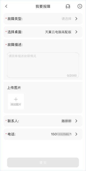 使用AI云电脑过程中,如遇到问题,可点击“报障”,填写故障信息或者拨打服务热线:400-810-9889。