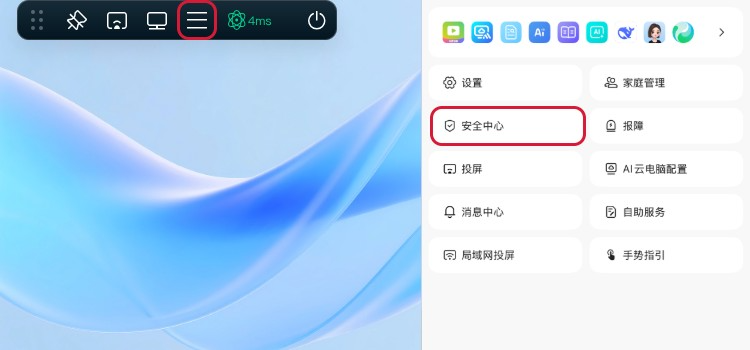 前往控制面板的“安全中心”,可管理AI云电脑的登录安全情况.
