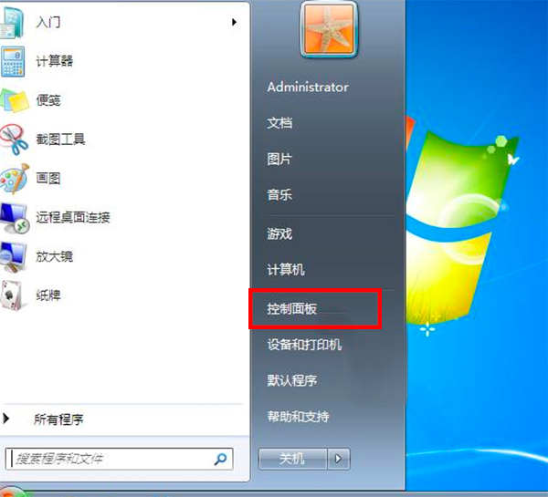 第1步 启动Windows 7操作系统,点击任务栏"开始"按钮。选择"所有程序-控制面板"项。