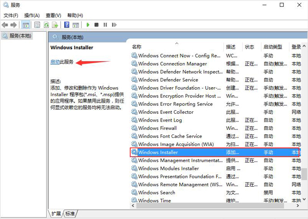 (3)找到并点击【Windows Installer】,再点击【启动】生效该服务。