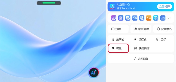 点击屏幕右下方的悬浮球,在展开的快捷菜单中点击“键盘”,即可打开虚拟键盘。