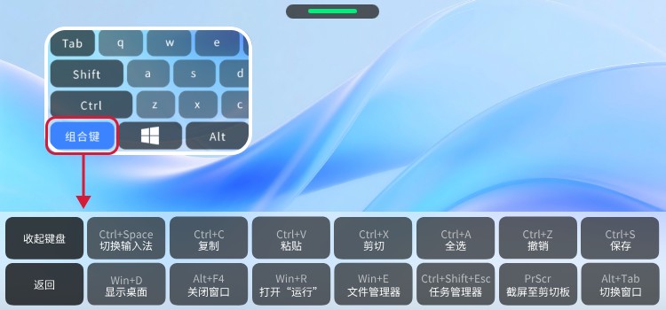 点击虚拟键盘左下角组合键即可查看所有可选组合键。
