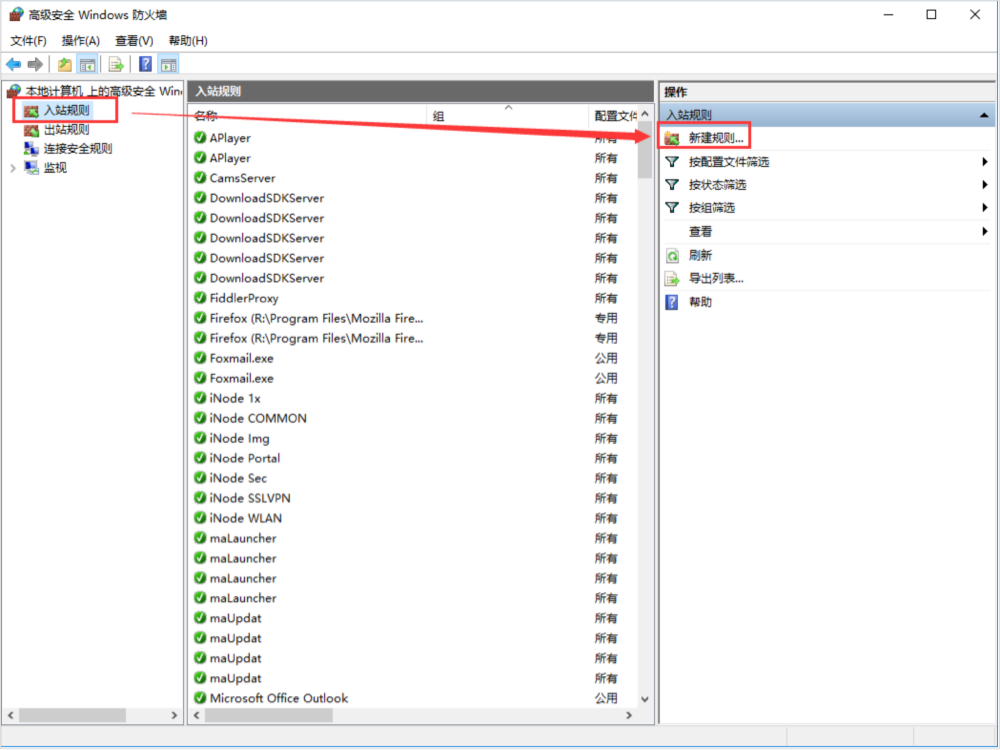 添加入站访问规则