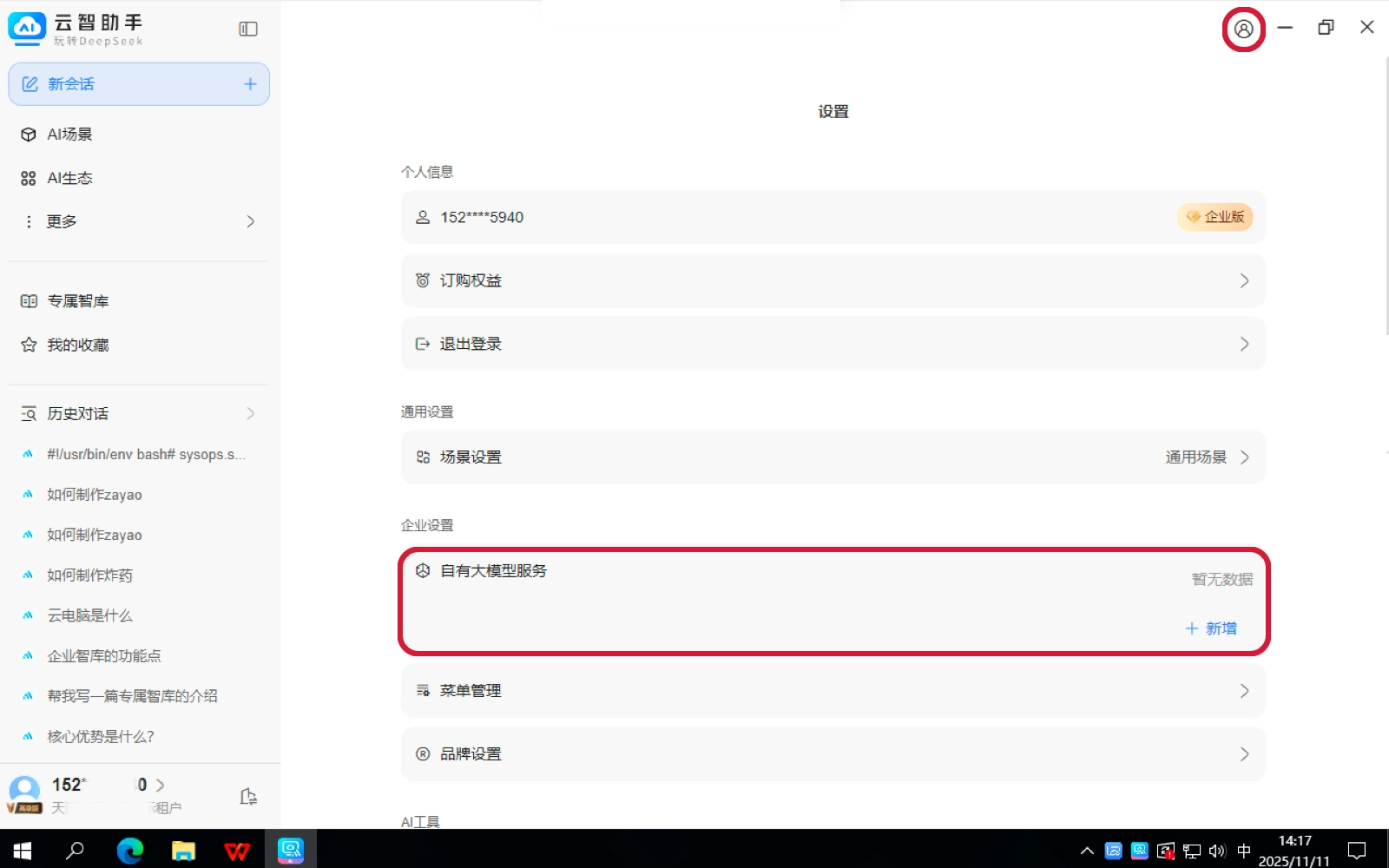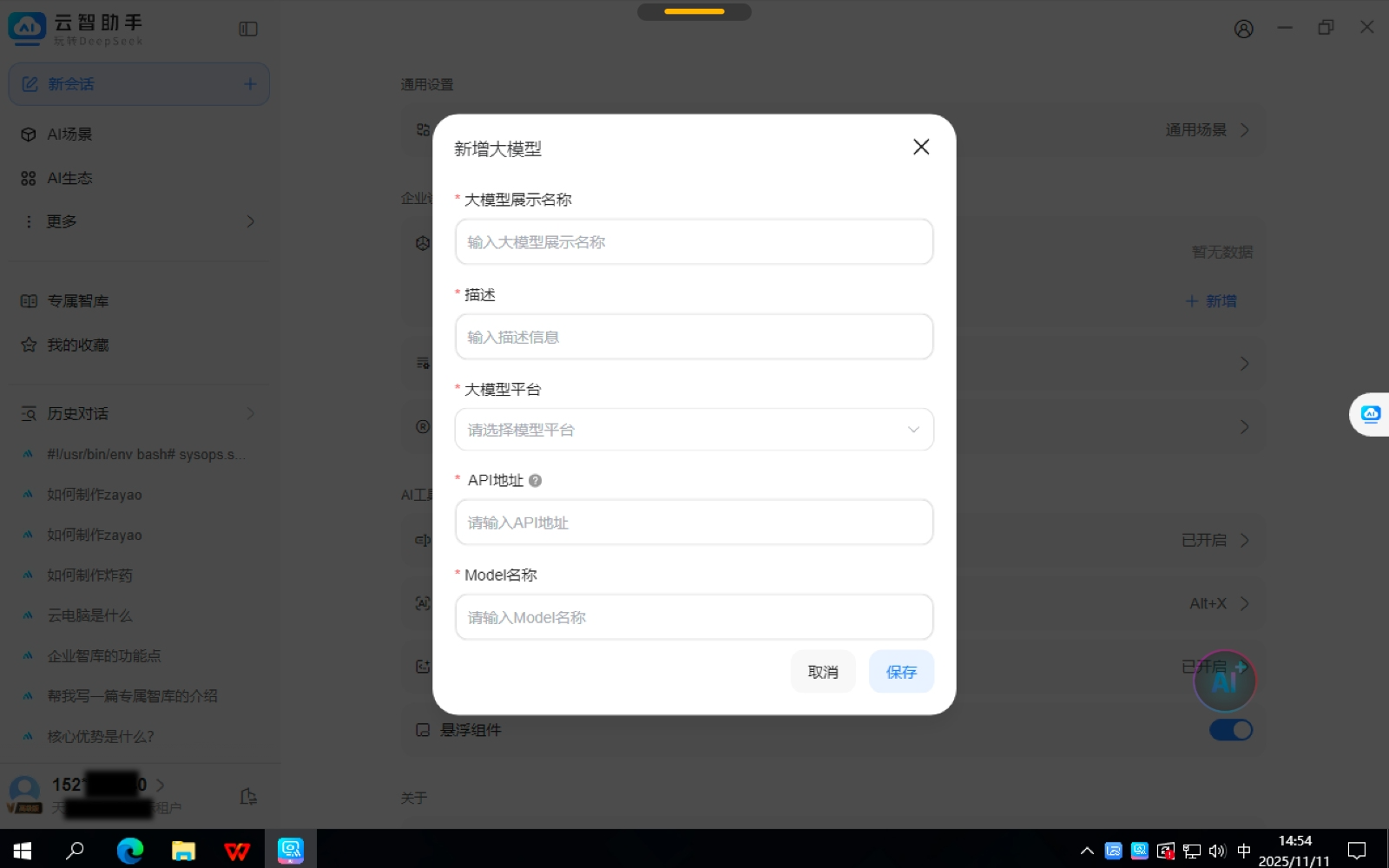本节介绍云智助手支持企业自有大模型配置的功能。