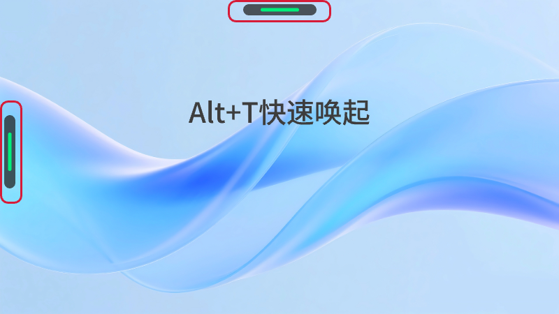 工具栏拖动至屏幕边缘时,自动吸附隐藏,隐藏后可按Alt+T快速唤起。
