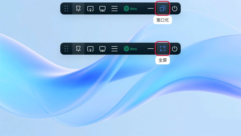 使用窗口化模式时,分辨率可能会降低。为了更好的使用体验,建议全程使用全屏模式。