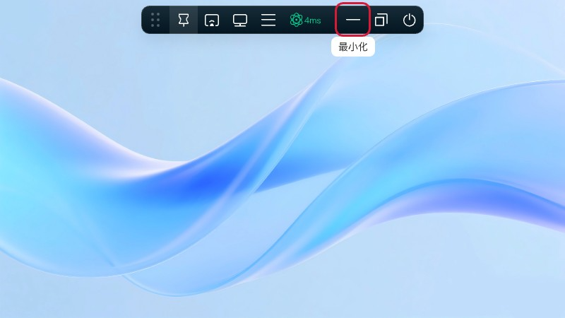 工具栏-最小化功能仅支持Windows系统客户端、Mac客户端、国产化客户端。Ubuntu瘦终端,安卓瘦终端或安卓一体机显示为全屏模式,不支持最小化功能。