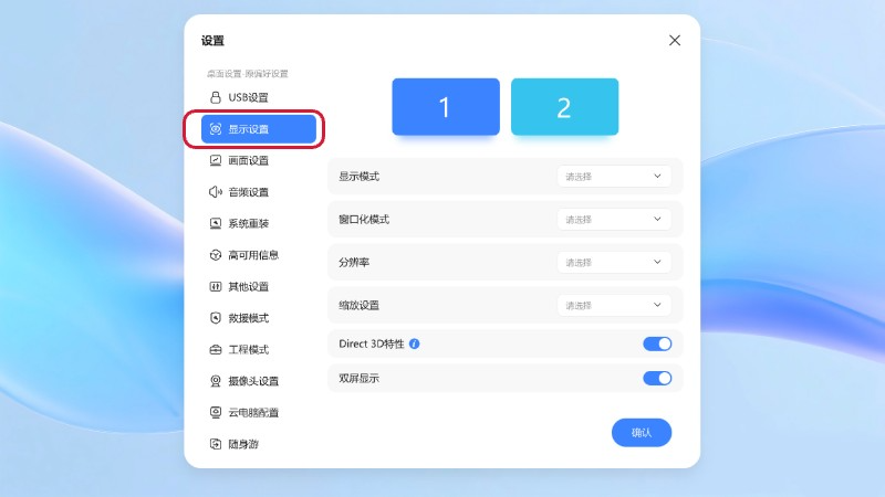 如需设置AI云电脑分辨率,进入设置-选择显示设置: