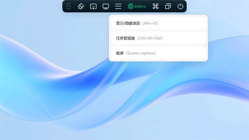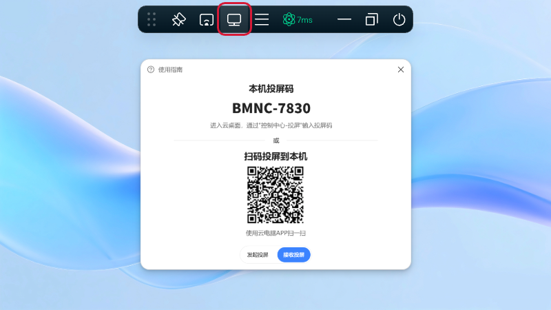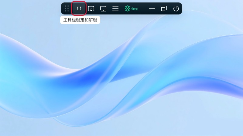 进入AI云电脑后,可在桌面顶部看到工具栏,支持锁定和解锁工具栏