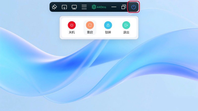工具栏-点击“退出”模块,可以找到“退出”、“锁屏”、“重启”、“关机”。