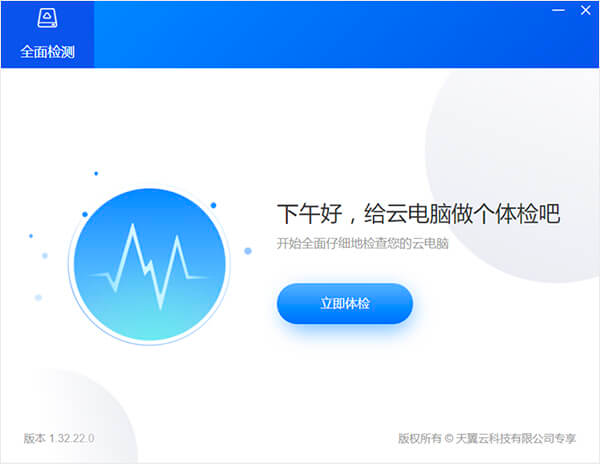 可通过桌面图标或“开始菜单”启动“云电脑检测工具”,若未找到检测工具应用,请在天翼云电脑应用市场下载。