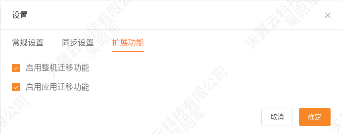 在“设置”-“扩展功能”中勾选“启用整机迁移功能”和“启用应用迁移功能”。