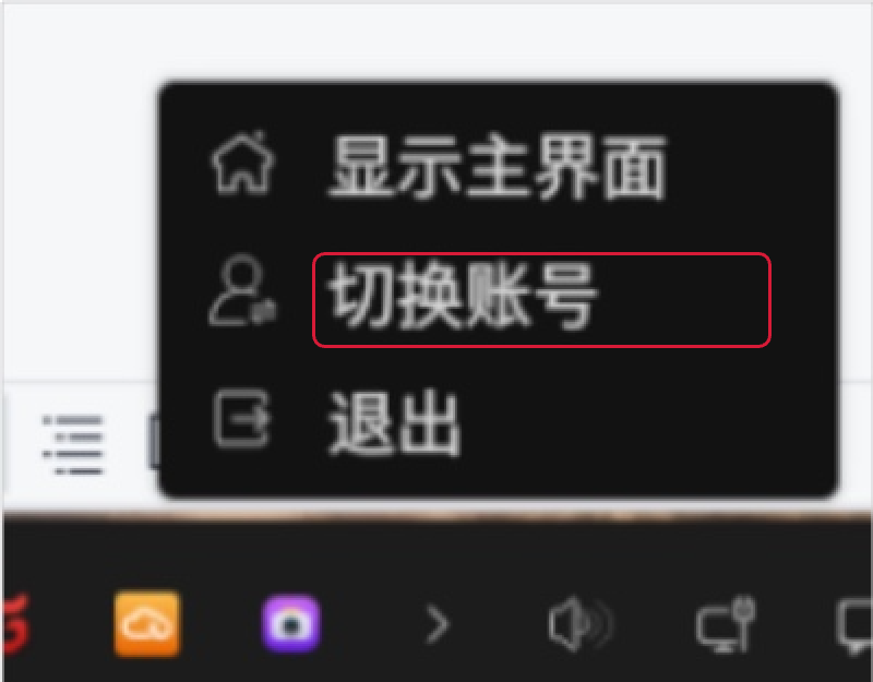 在任务栏的同步工具图标鼠标右键,点击“切换账号”,可退出当前登录的账号,重新返回登录界面。