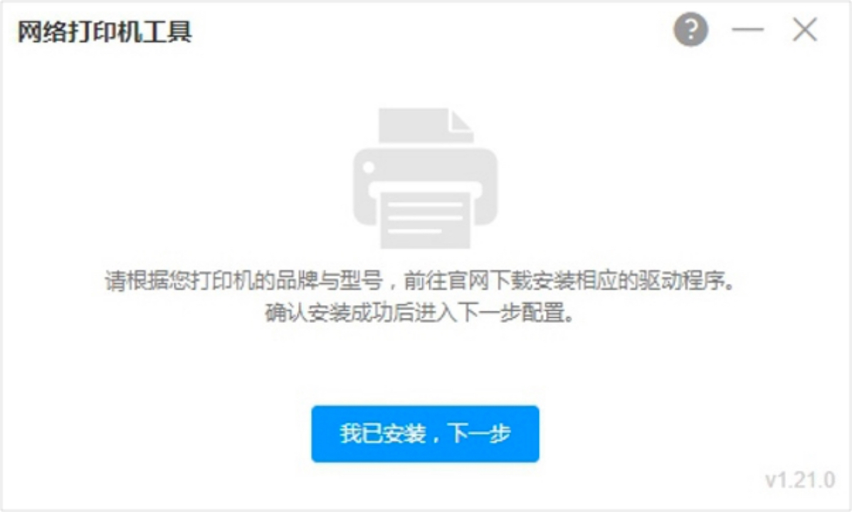 运行AI云电脑的“网络打印机工具”应用(下载地址:网络打印机工具),根据提示选择“我已安装,下一步”;