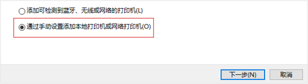 选择【通过手动设置添加本地打印机或网络打印机(O)】,点击下一步;