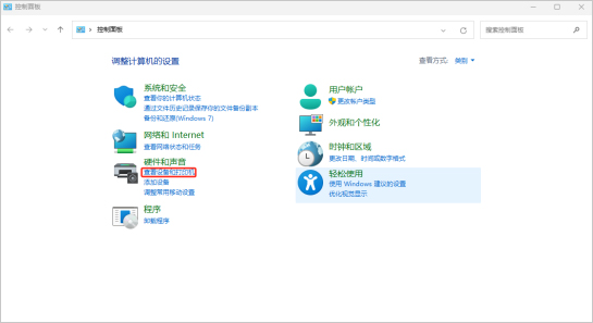 从本地电脑打开控制面板 点击查看设备和打印机。