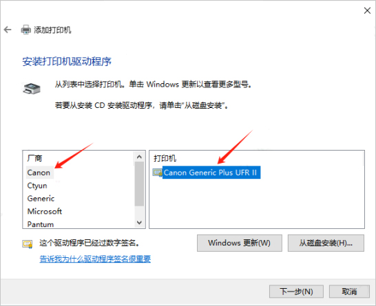 示例中,本地win11终端内佳能C3826使用Canon Generic Plus UFR II驱动,在AI云电脑中选择同型号即可。