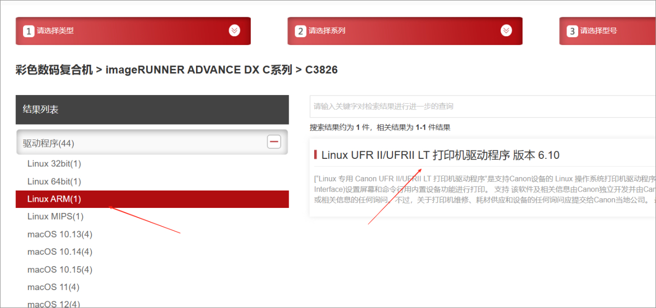 对安装包进行解压,找到对应CPU架构的安装包进行安装;(不同品牌打印机驱动安装包安装步骤不同)以下为佳能打印机的Linux系统驱动安装过程;