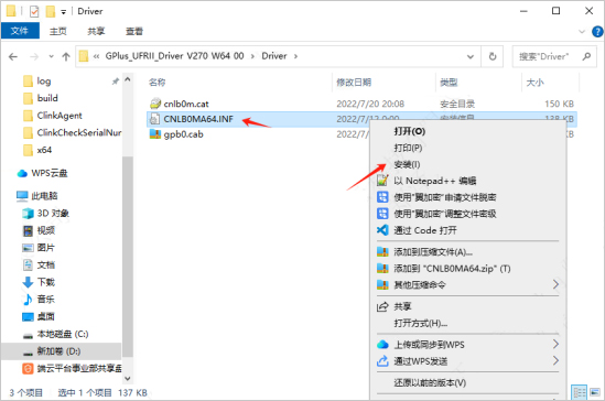 需要在AI云电脑中安装对应的打印机驱动。以佳能C3826打印机为例,驱动安装包中有对应的.INF文件,右键安装即可。
