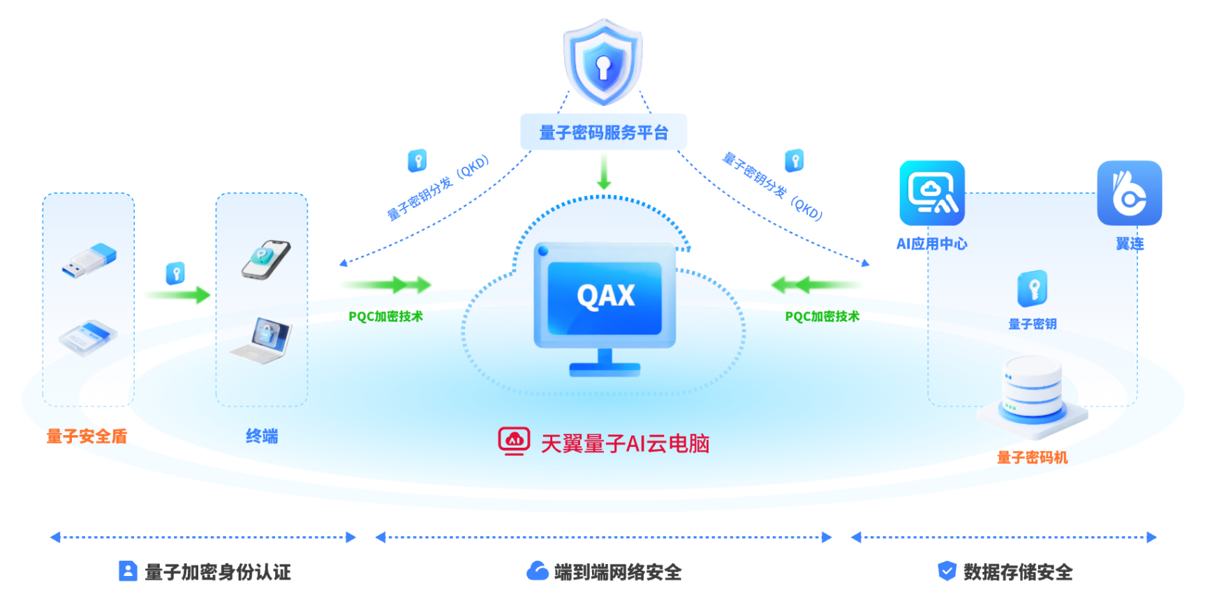 依托中电信量子安全加密体系,深度集成量子安全服务平台,基于“量子软模块/量子安全盾+云电脑”,提供更高级别的量子安全防护。