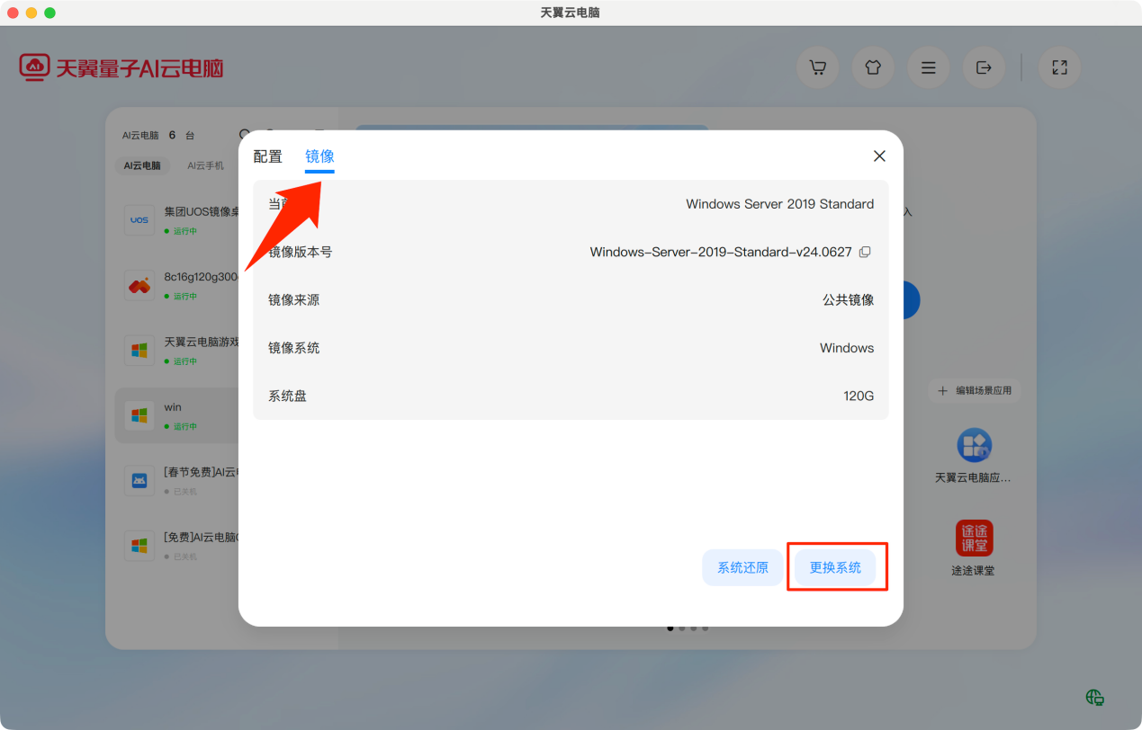 方式二:已有云电脑用户切换镜像