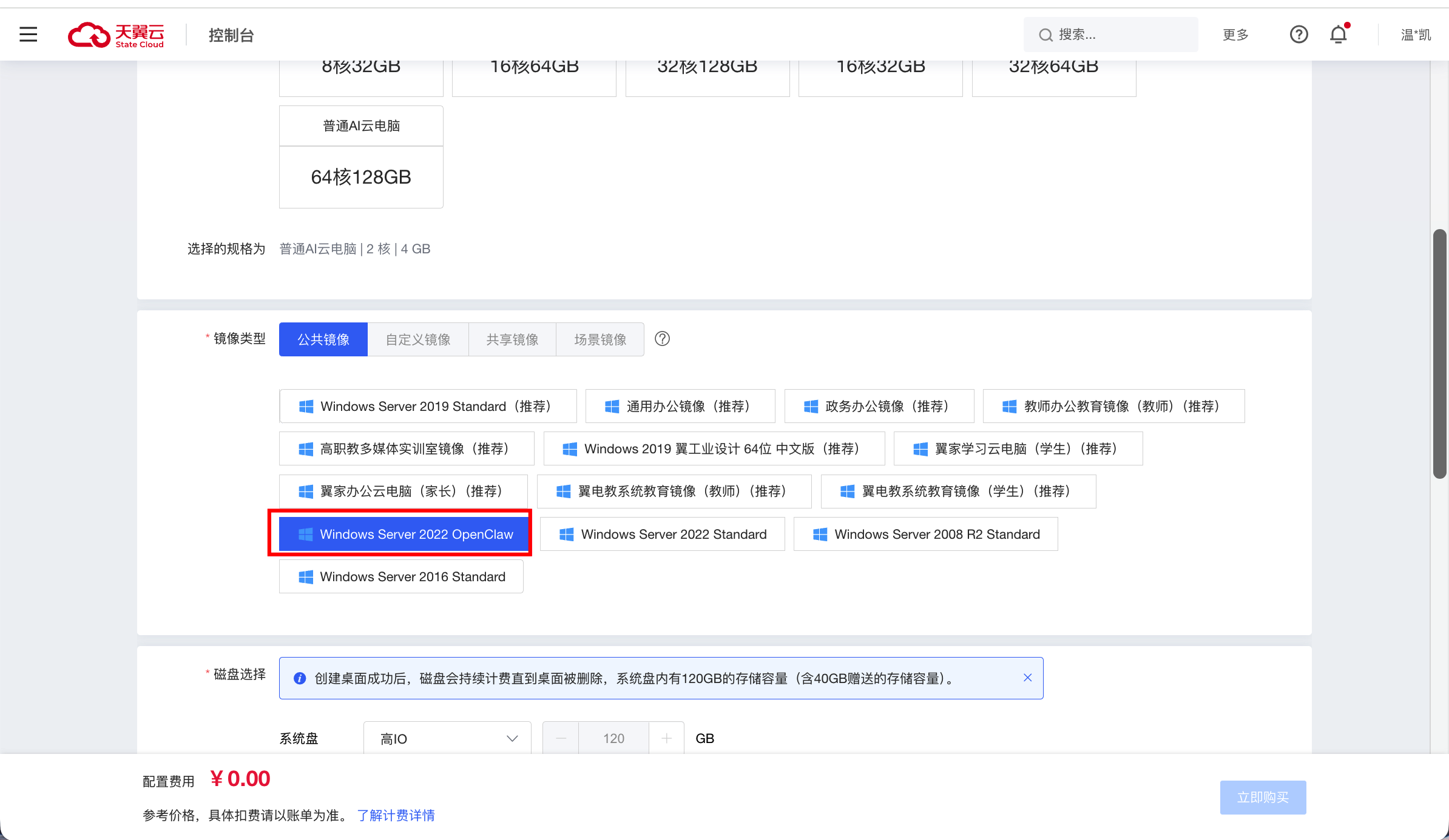 登录成功后,选择对应“Windows Server 2022 OpenClaw 64位”镜像,其他配置按需选择,点击“立即购买”完成下单,可参照快速订购流程;