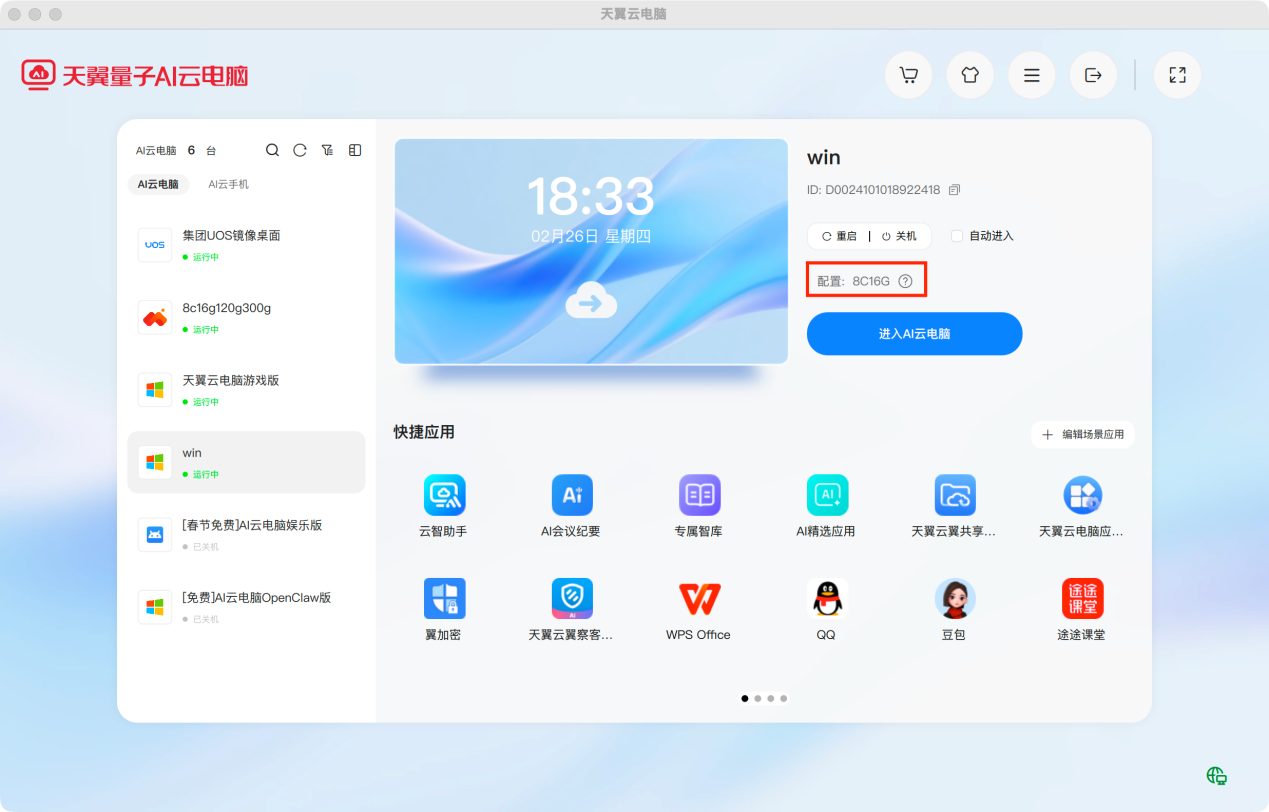 下载云电脑客户端,登录即可使用。