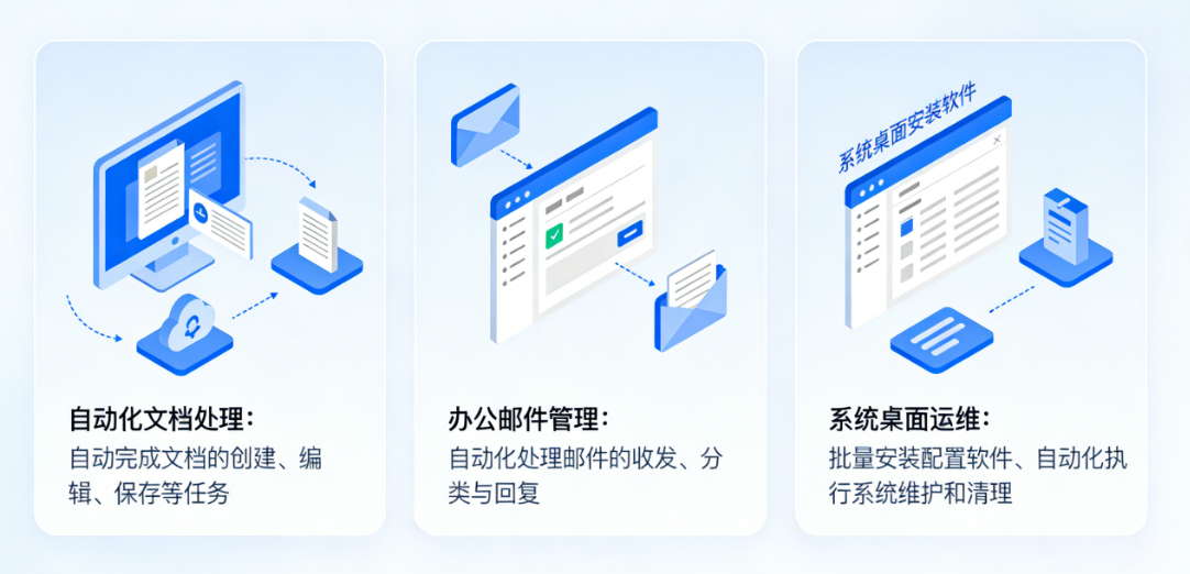 搭建可定制云端桌面环境,依托标准化接口实现传统桌面软件自动化调用与批量操作,适配政企办公,研发测试等多场景使用。