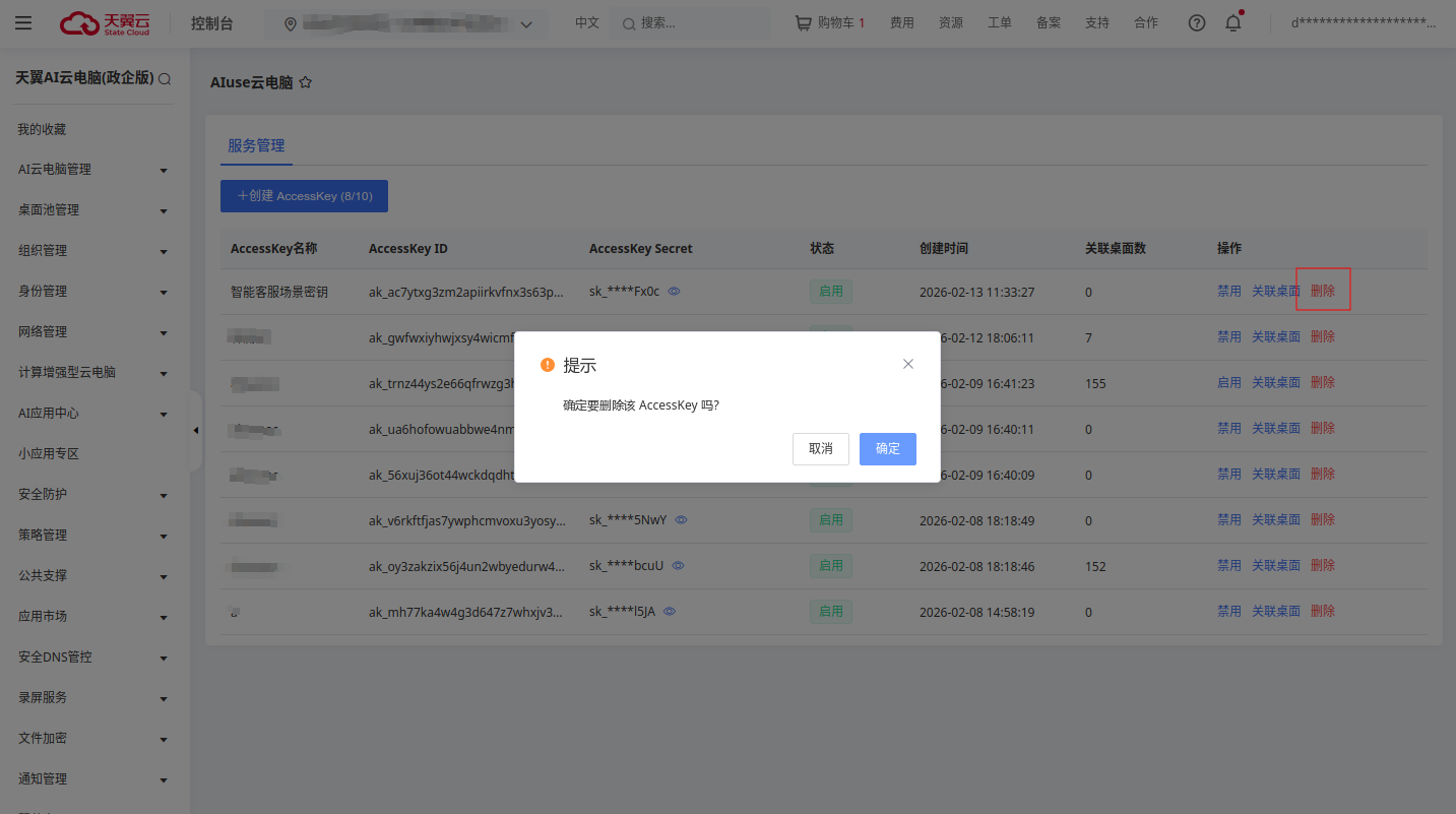 AccessKey需要关联指定的云电脑范围才可使用