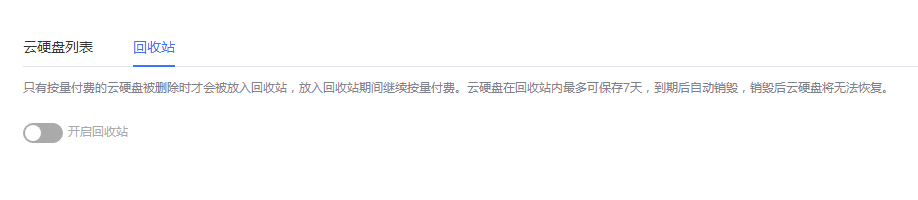 用户可根据需求,随时关闭云硬盘回收站功能。