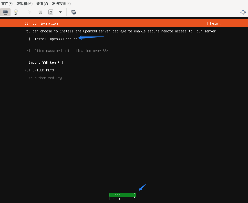 选择‘Install OpenSSH server’,回车键确认。