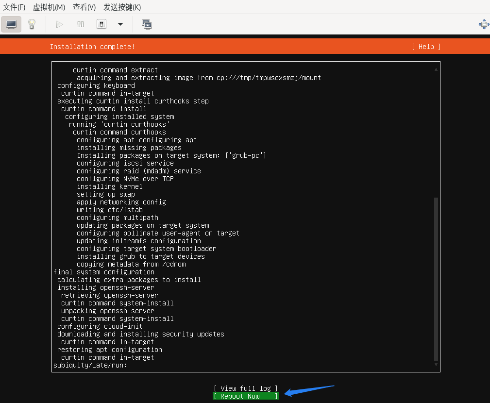 等待一会儿后,安装完成。点击右下角的“Reboot System”按钮重启系统。
