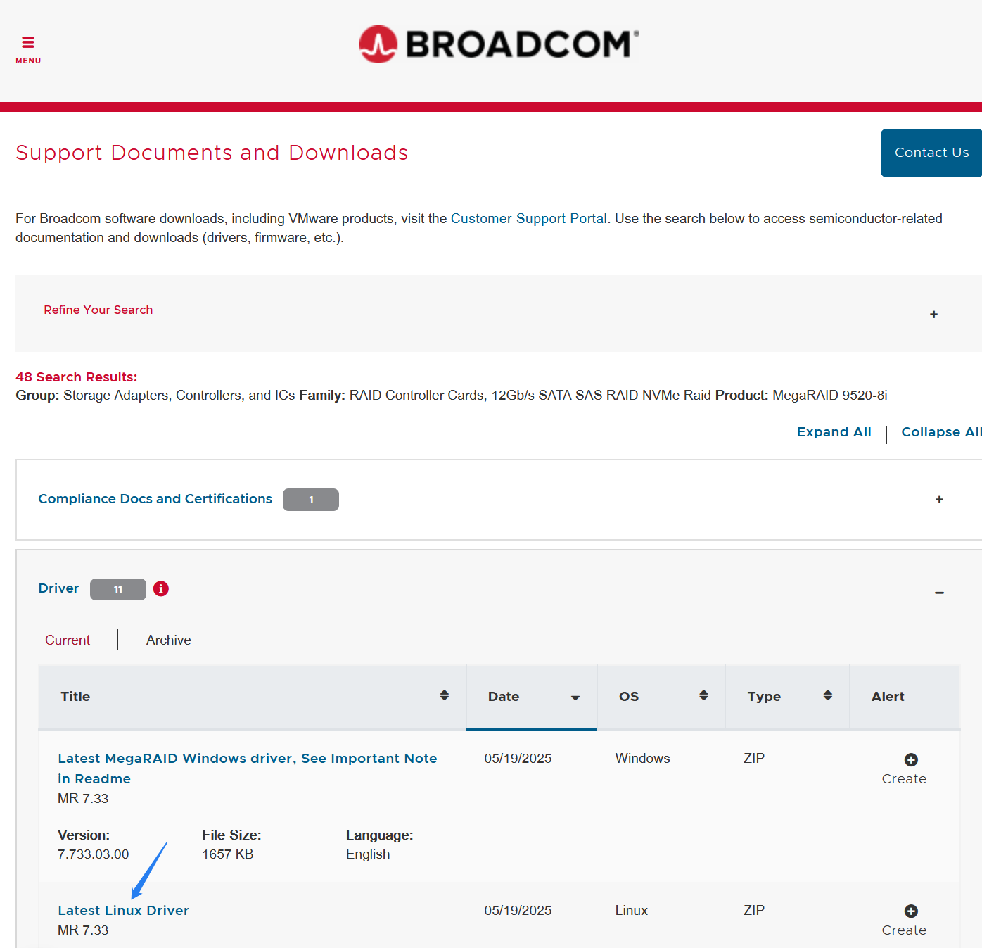 首先,可从从 https://www.broadcom.com/support/download-search 页面根据硬件信息搜索需要的驱动。