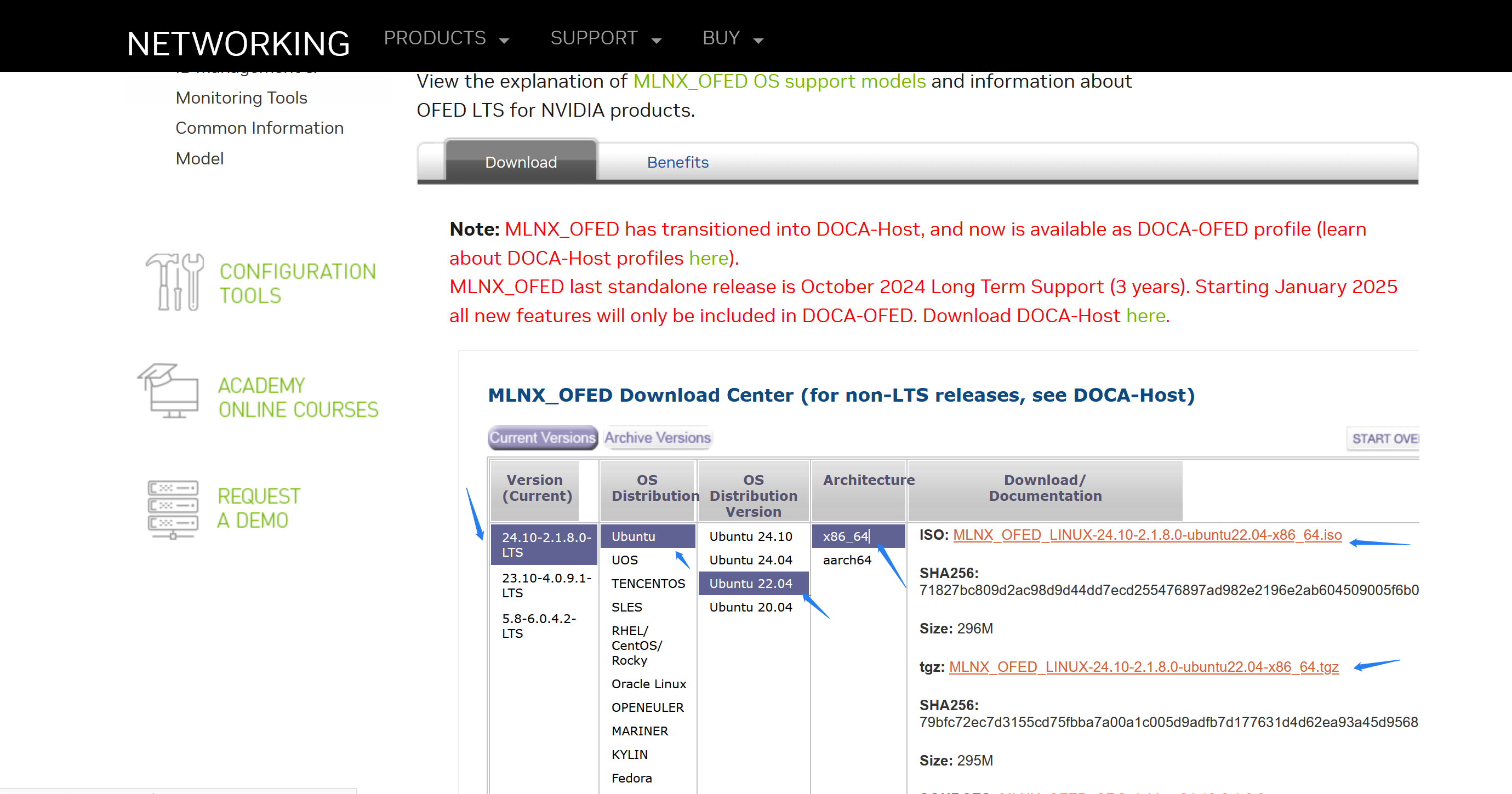 首先,可从从 https://network.nvidia.com/products/infiniband-drivers/linux/mlnx_ofed/ 页面根据硬件信息搜索需要的驱动。