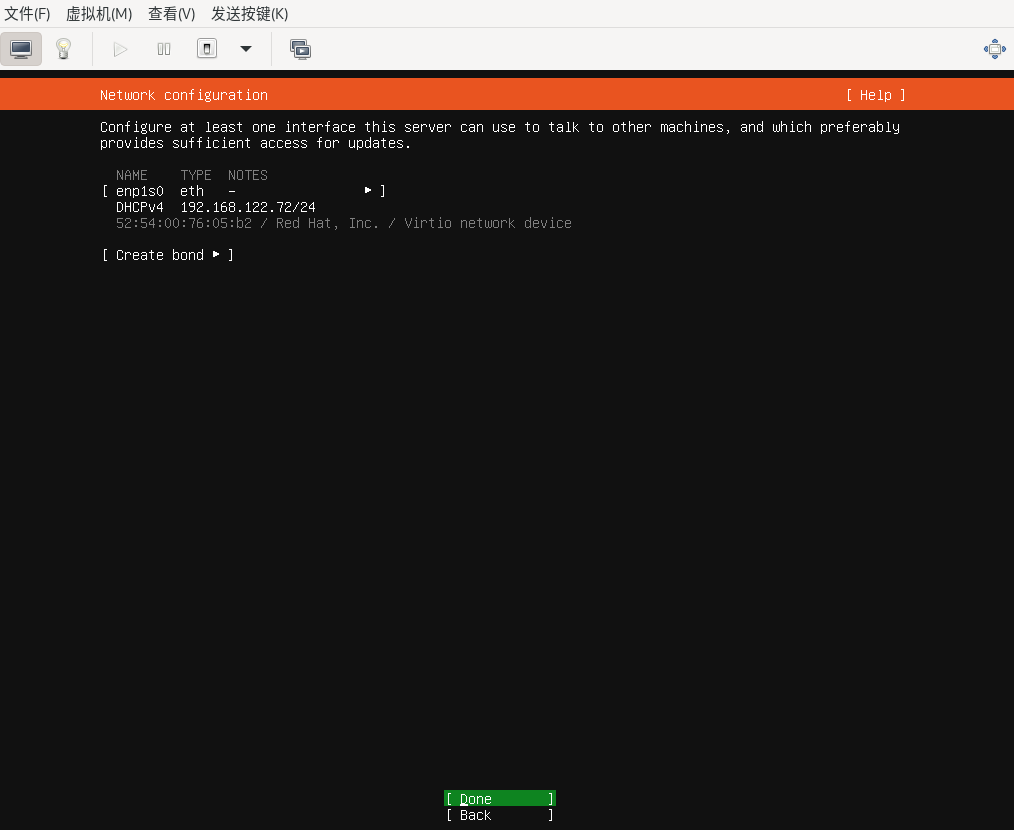 默认使用dhcp获取ip,回车键确认。