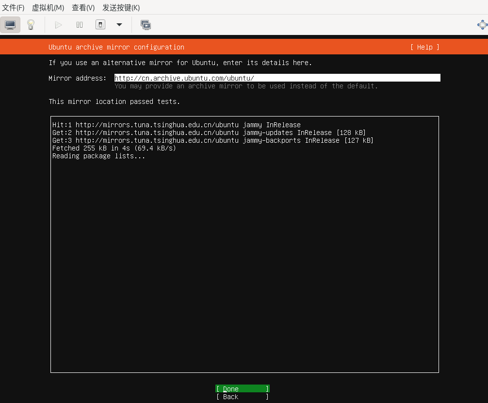 点击左上角的“开始安装”,此时启动虚拟机,并开始安装系统。后续安装过程和BIOS方式启动安装系统几乎一样,只是分区时需要确保有EFI分区,在分区一节中我们会再强调。