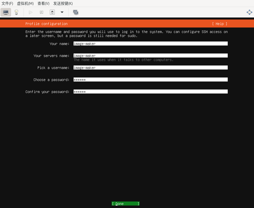 部分系统可跳过创建新用户,本文示例Ubuntu 22.04系统会自动创建root用户,且无法跳过创建新用户,在镜像制作完成后的清理阶段可删除该新用户。