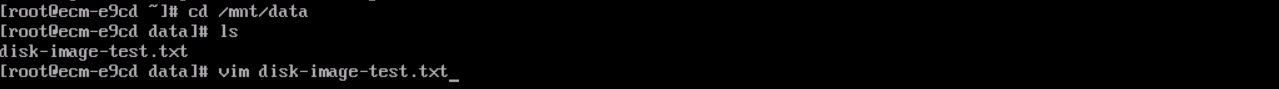 - 输入命令vim disk-image-test.txt,打开查看文件“disk-image-test.txt”,可以看到文件内容一致,数据迁移成功。