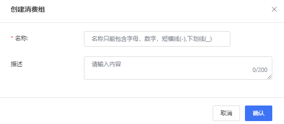 (5)点击“创建消费组”后,输入消费组名称,点击创建。