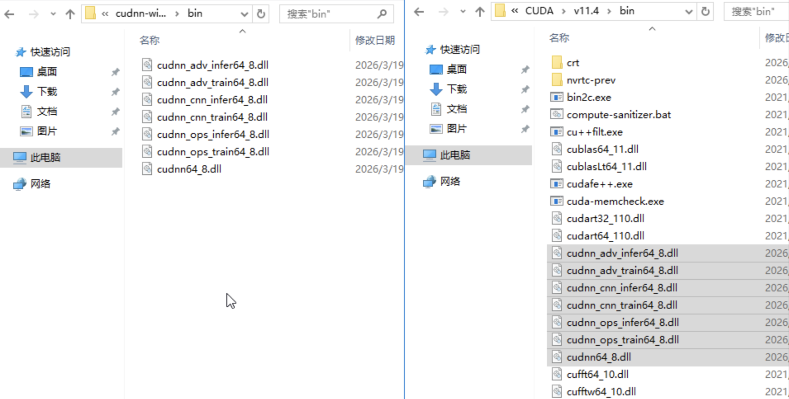 打开解压后的bin文件夹,全选所有文件,复制到CUDA的bin目录。