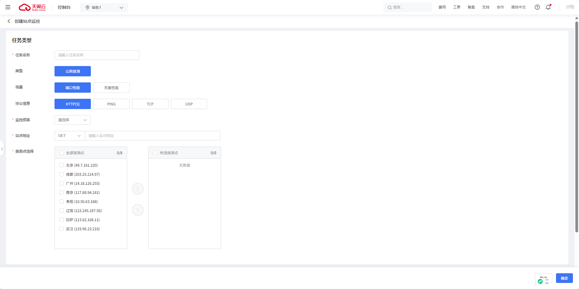 | 拨测点选择 | 选择公网拨测源,支持多选 | 是 | 北京、成都 |