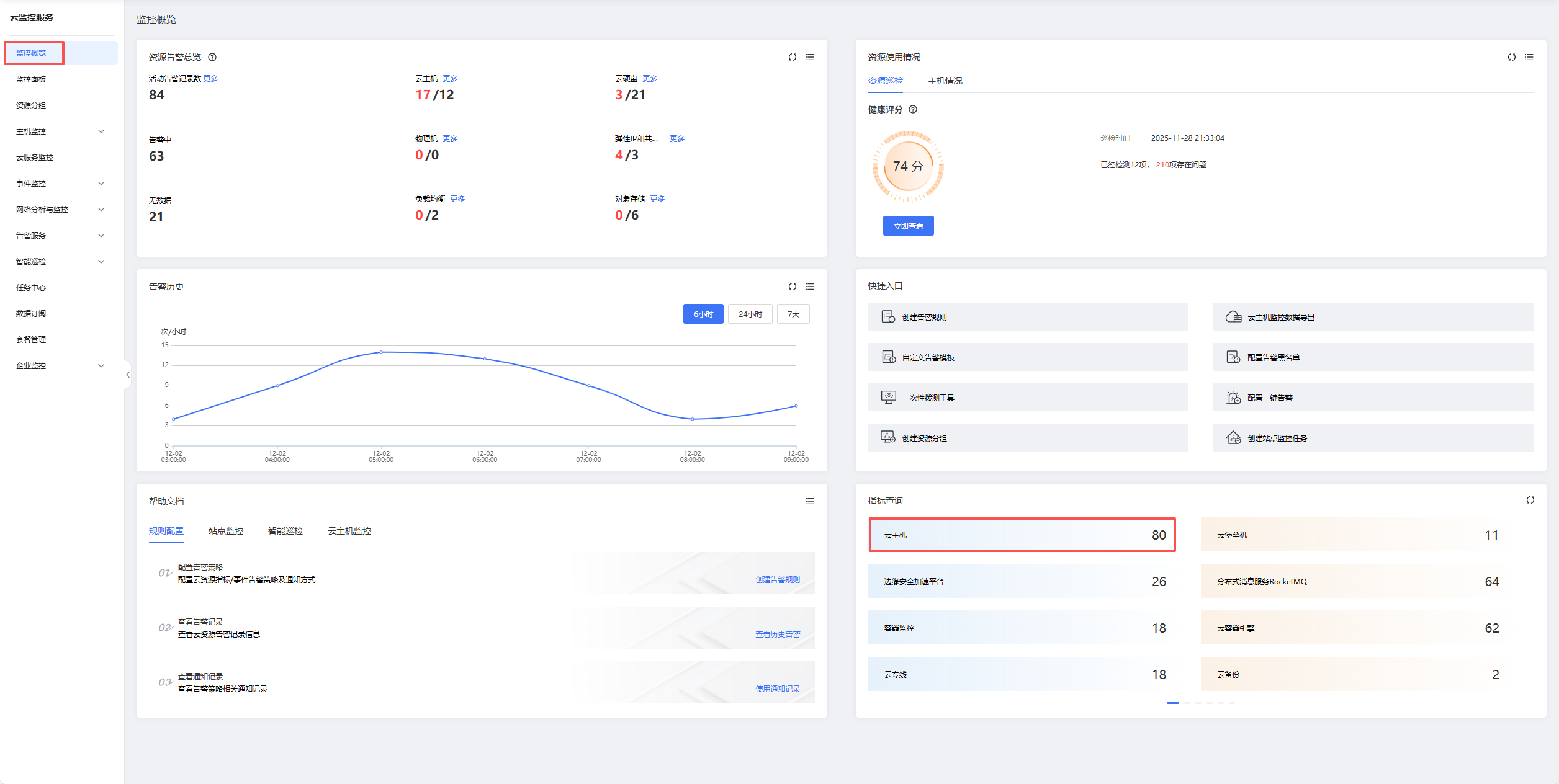 在云监控控制台-监控概览-指标查询模块,点击任意一款产品,如下图所示
