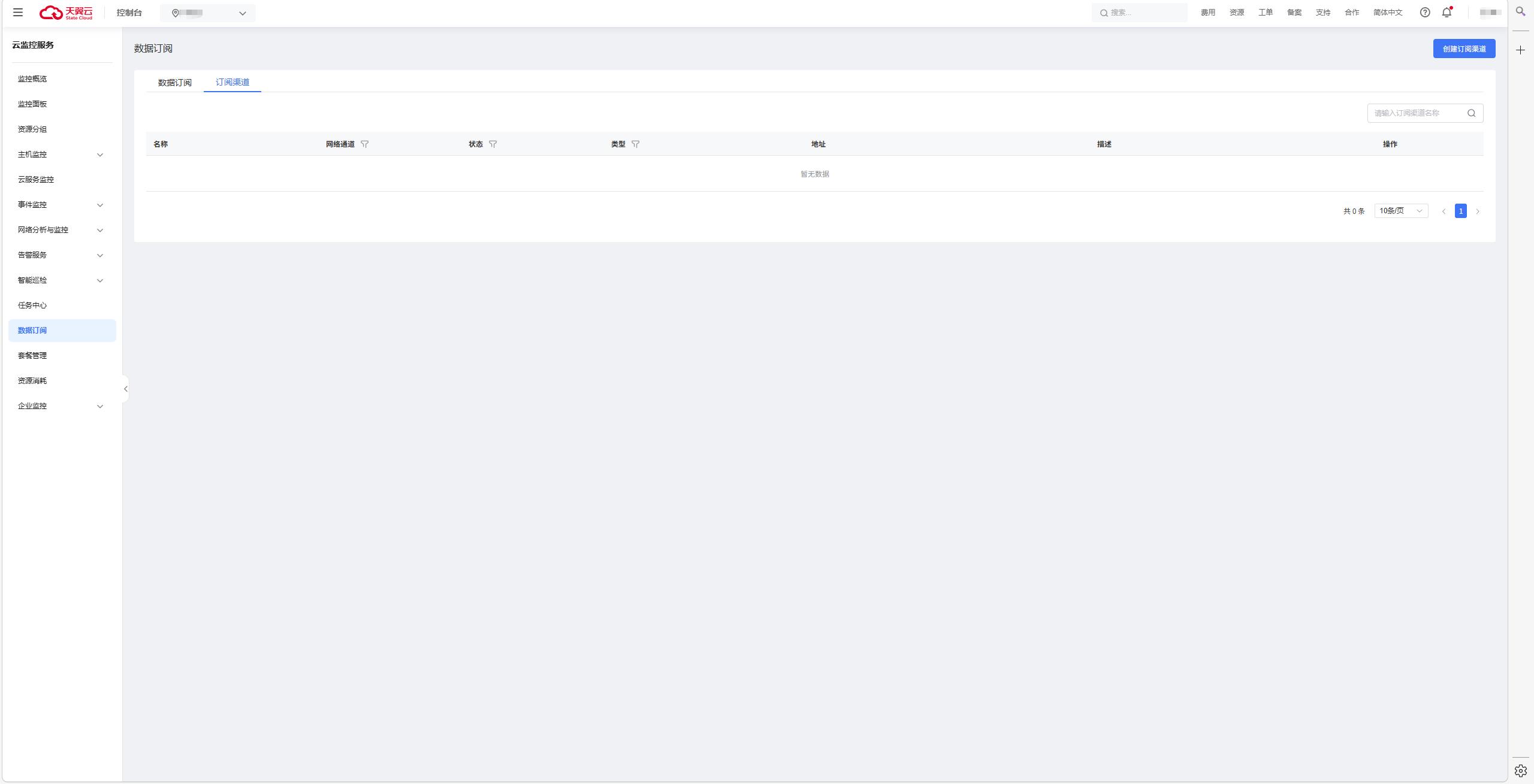 5.切换至“订阅渠道”页签,即可进入订阅渠道管理页面。