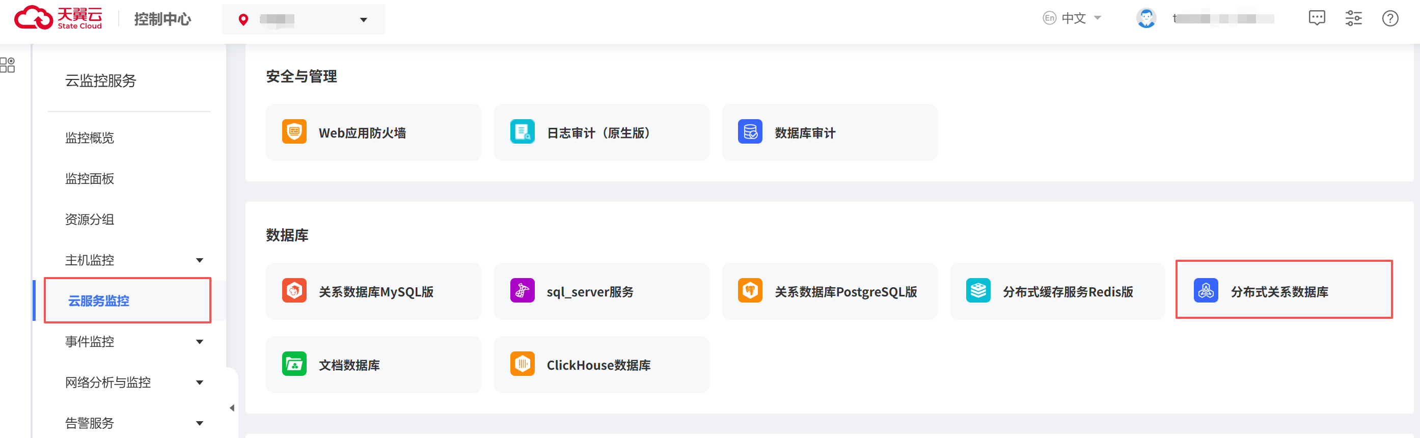 在左侧导航栏,选择云服务监控,进入云服务监控页面。