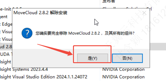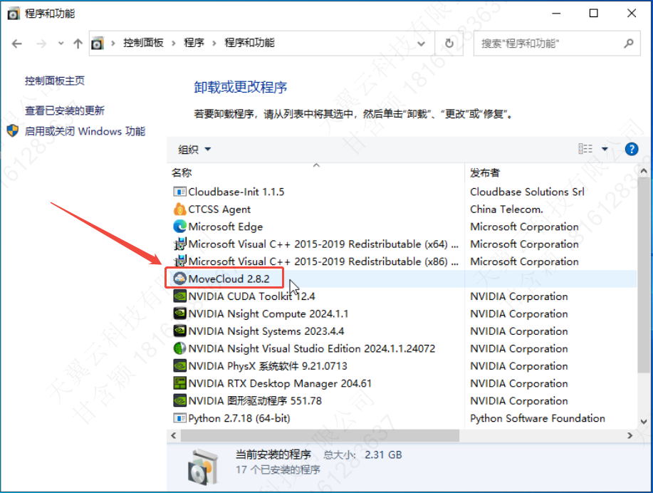 4 | 卸载MoveCloud | 找到MoveCloud x.x.x,其中x.x.x为版本号,如下图中的2.8.2,选中后右键点击卸载。 |